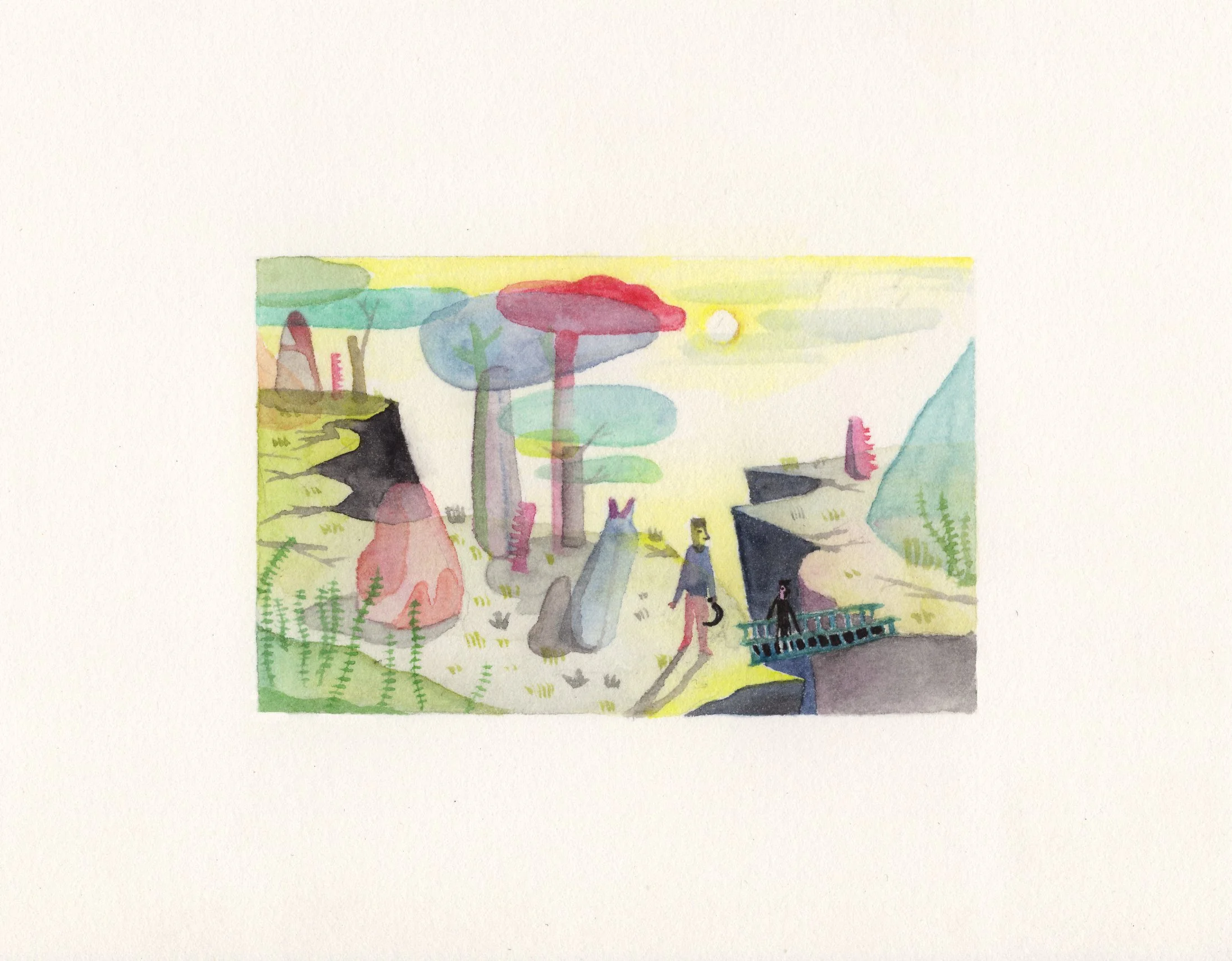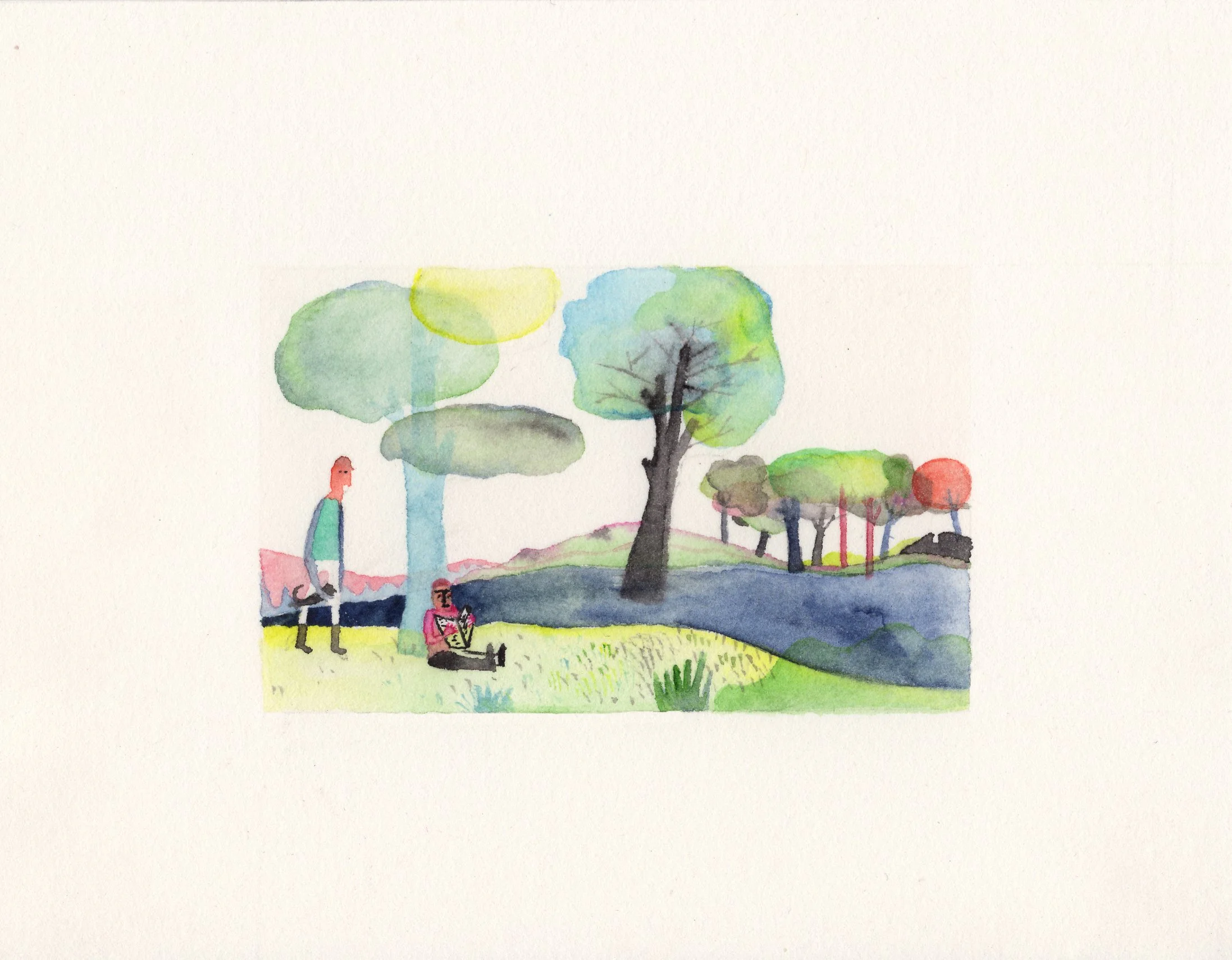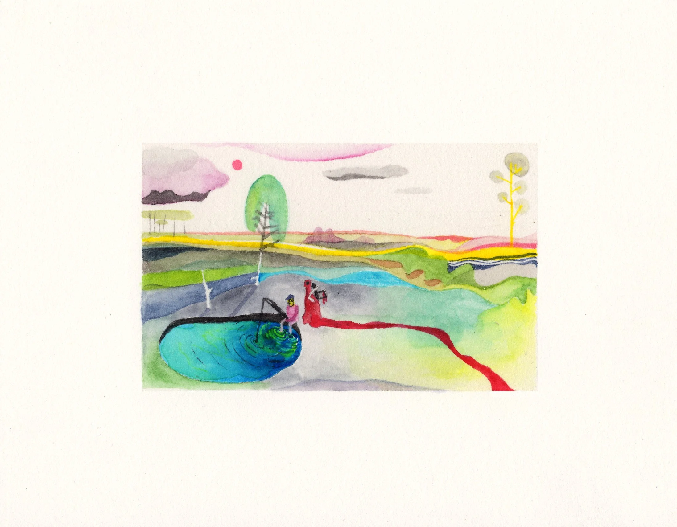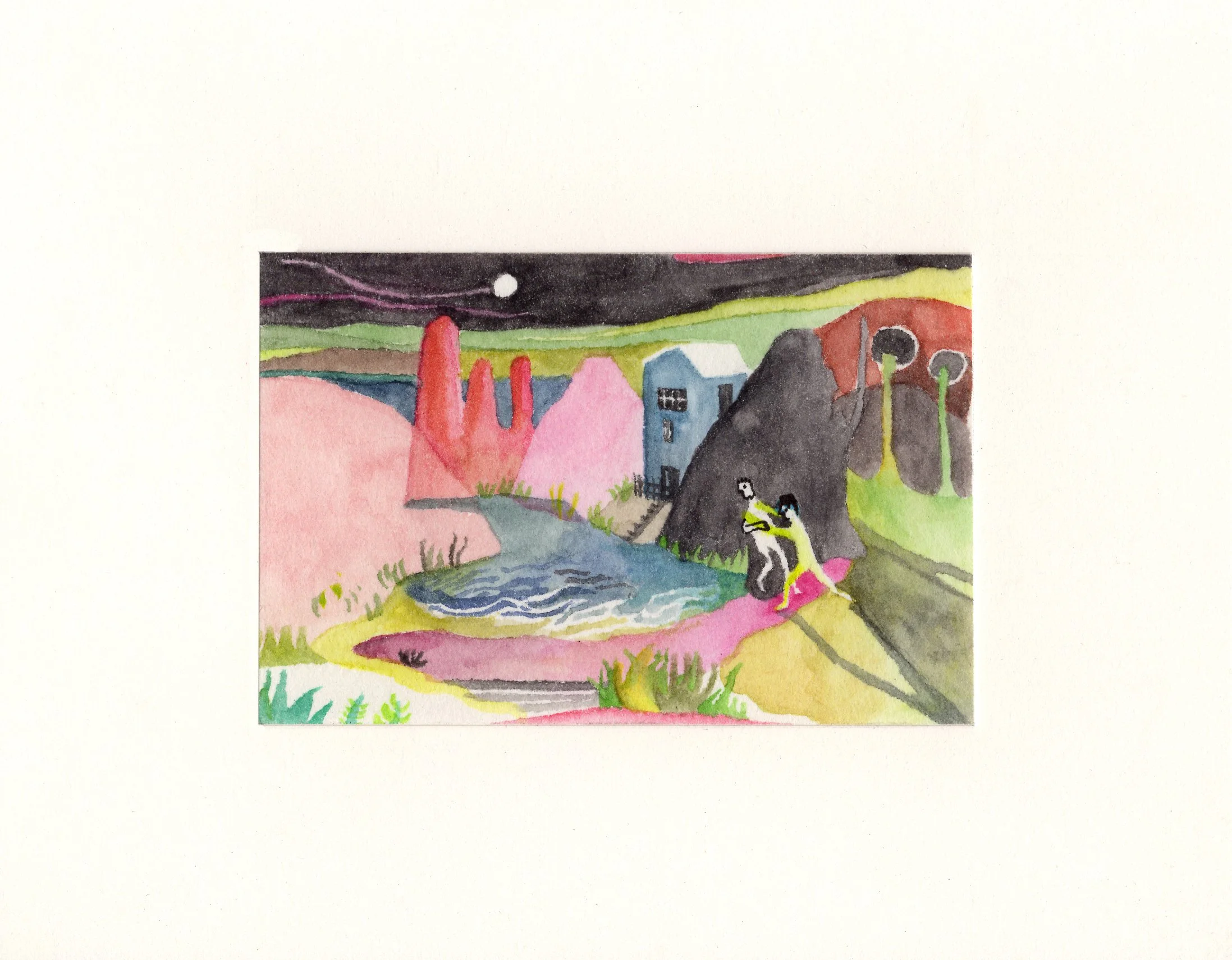 meurtres Série en devenir de petites scènes aux apparences naïves, mais où la douceur n’est que le témoin d’assassinats silencieux. papier satiné 300g Arches Rivesaquarelle et encre, 12x9 cm