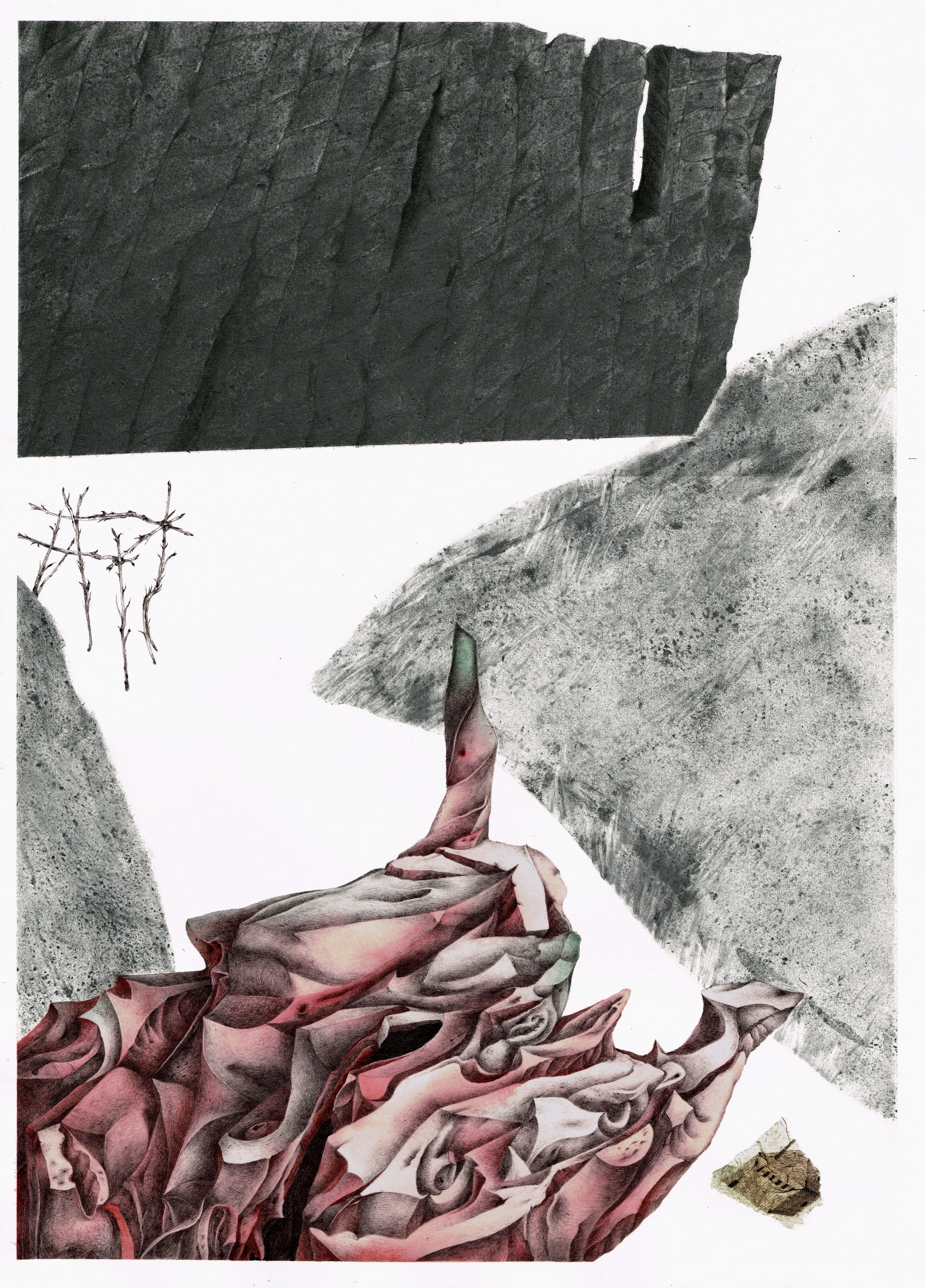 Murmure l’abandon I & II. Graphite, aquarelle, stylo-bille et collage, 26x38. 2023