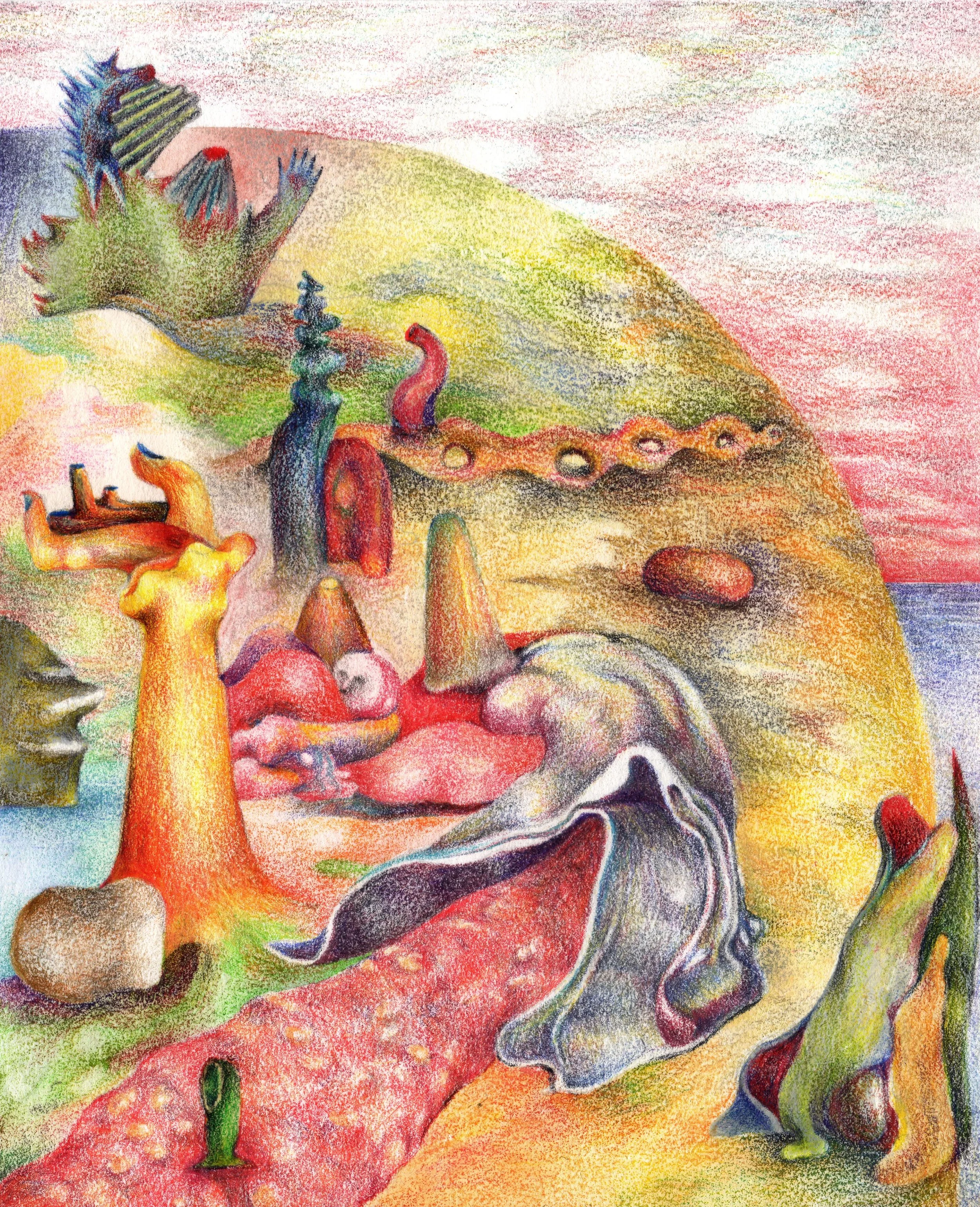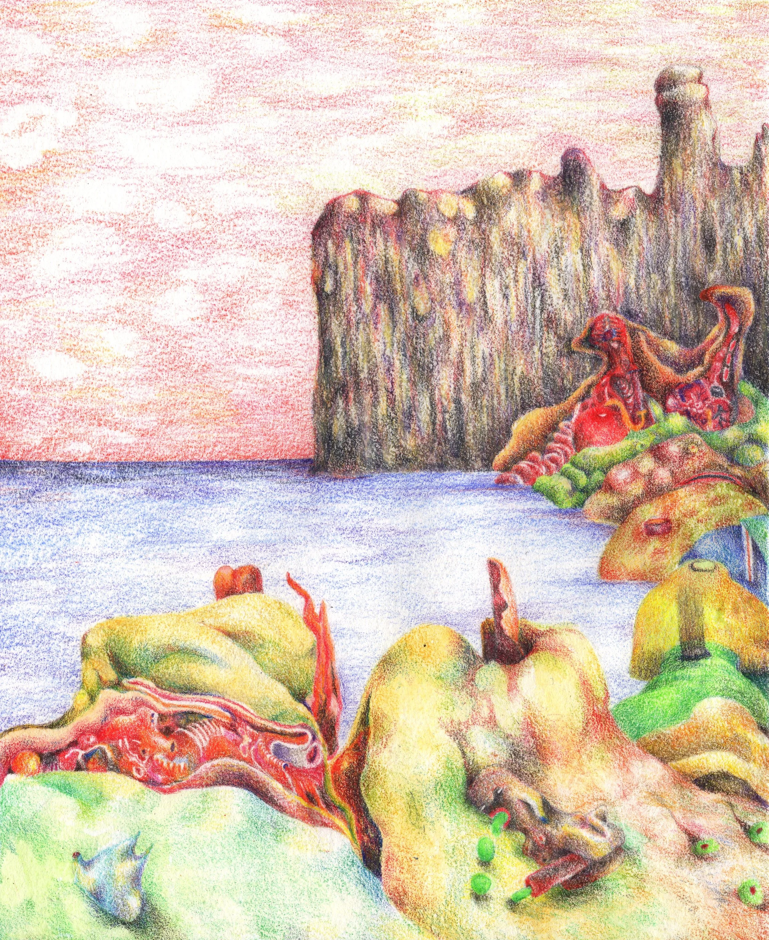 Aquarelle et crayon de couleur sur papier bamboo 90g Hahnemühle, 13x16 (format individuel). 2020